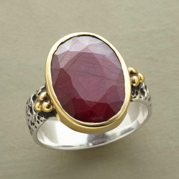 Hold court with a ring. set with ruby that glows from a 14kt gold-plated bezel. on a hand worked sterling silver band. Exclusive. Whole sizes 5?C10.