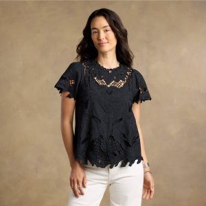 Tonal openwork details grace this easy lace top. Keyhole at the back. Camisole included. Cotton. Hand wash. Imported. Exclusive. Sizes XS (0–2). S (4–6). M (8–10). L (12–14). XL (16–18). XXL (20–22). Approx. 24.5l.