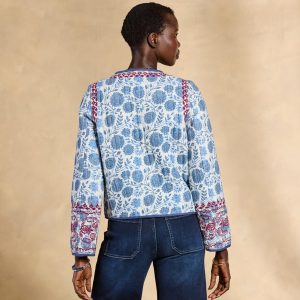 Our lightweight quilted jacket is awash in florals and embellished with vintage-inspired embroidery. Zip front with contrast color pull-tie and lovely piped finishes. Cotton voile. Machine wash. Imported. Exclusive. Sizes XS (0–2). S (4–6). M (8–10). L (12–14). XL (16–18). XXL (20–22). Approx. 22.5l.