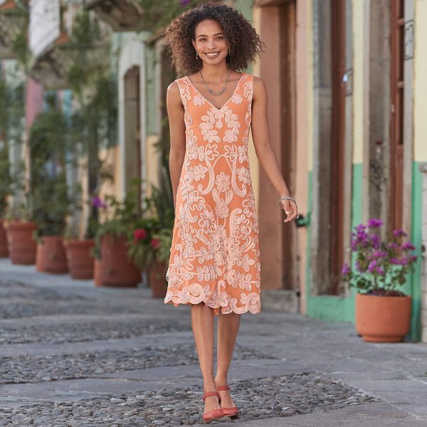 Hearts skip a beat over this romantic rayon dress with jersey body and mesh overlay. Woven. ribbon appliqué adds an unrivaled elegance. Classic fit with full skirt. Nylon/rayon/spandex. Dry Clean. but for best results Sundance recommends garment to be hand washed. Imported. Exclusive. Sizes XS (0-2). S (4-6). M (8-10). L (12-14). XL (16-18). XXL (20-22). Approx. 42l.