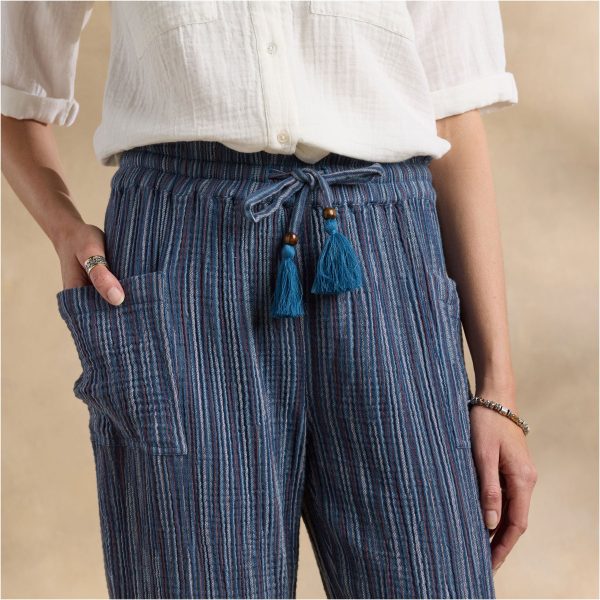 Beautifully textural. our easy Campari Pants are fashioned from striped yarn-dyed cotton with tacked cuffs. two patch pockets and elastic waistband with tasseled and beaded twisted rope tie. Machine wash. Imported. Exclusive. Sizes XS (0–2). S (4–6). M (8–10). L (12–14). XL (16–18). XXL (20–22). 25.5 inseam.