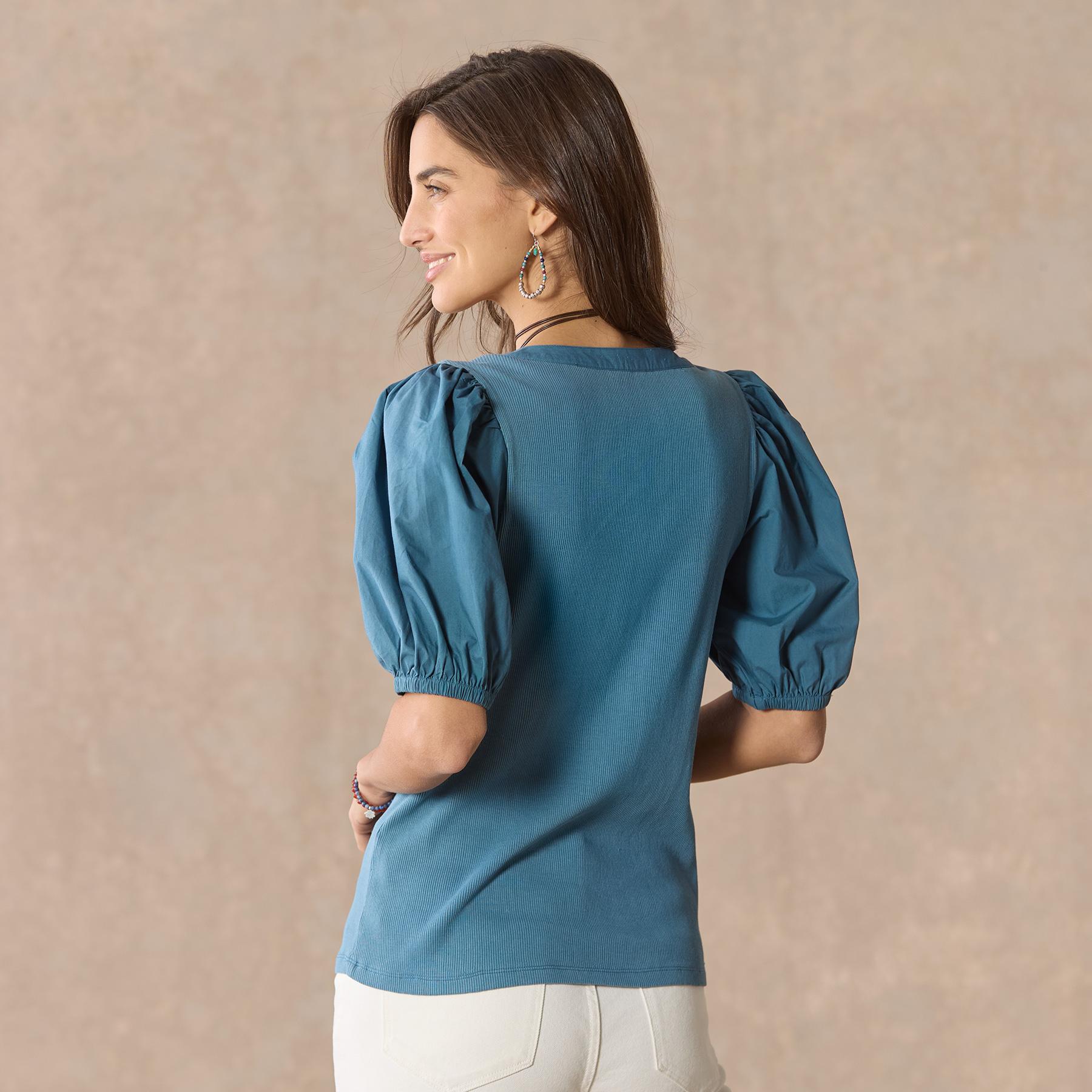 Our classic henley with a touch of feminine beauty featuring poplin sleeves and placket. laundry buttons and contract lace at the back neckline. Elastic cuffs. Cotton/spandex. Machine wash. Imported. Exclusive. Sizes XXS (00). XS (0??). S (4??). M (8??0). L (12??4). XL (16??8). Approx. 23l.