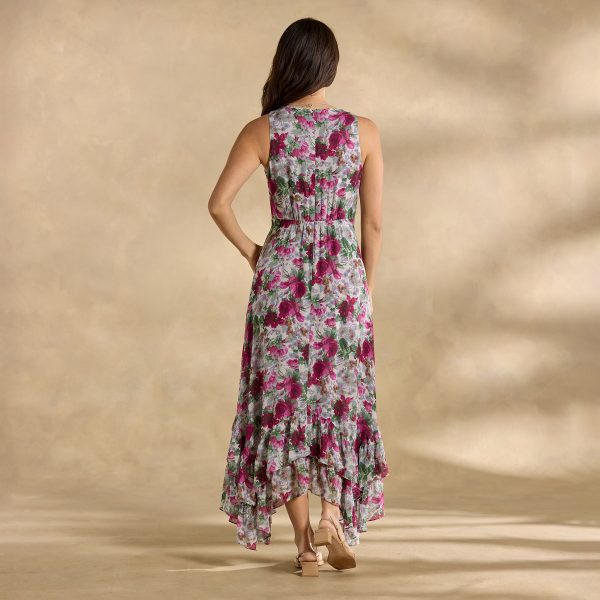 Equal parts outgoing and demure. our Champs de Fleur Printed Dress cultivates charm at every turn—with a flattering surplice neckline. subtle smocking and an ultra-femme asymmetrical ruffled hem. Back zipper with elastic for comfort; fully lined. Viscose/rayon. Machine wash. Imported. Exclusive. Sizes 2–16. Approx. 56l.