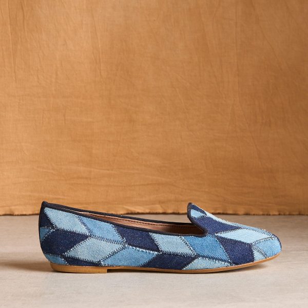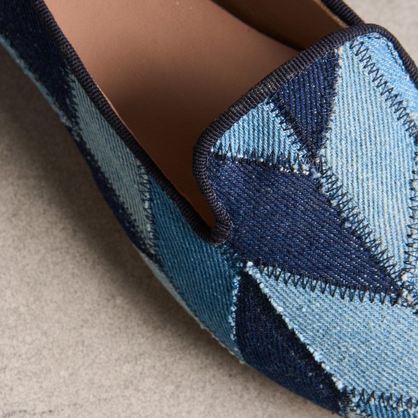 These flats feature a patchwork of different denims and are as versatile as a pair of jeans. Memory foam insole. leather lining. Cotton. Italy. Exclusive. Whole sizes 36-42. 36 (US 5.5). 37 (US 6). 38 (US 7). 39 (US 8). 40 (US 8.5). 41 (US 9.5). 42 (US 11).