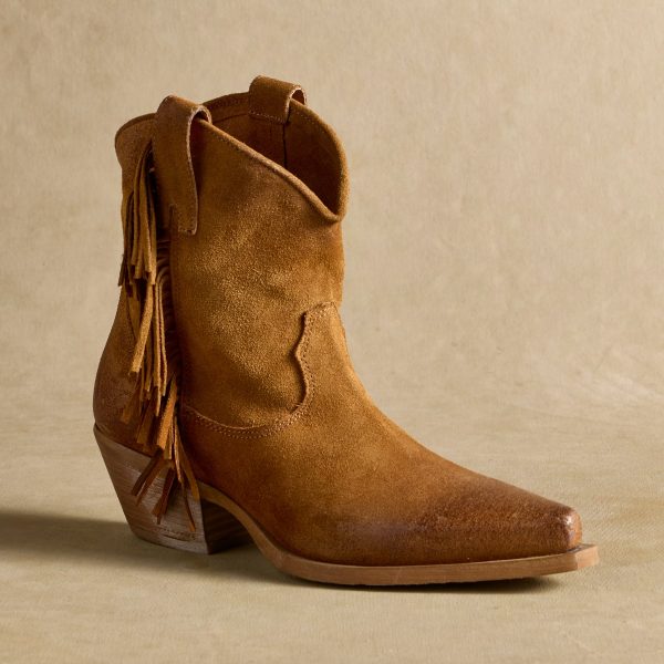 Go where the wind blows in these fringed. free-spirited short boots with side zip and pull-tabs for comfort and ease. Calf leather suede with rubber soles. Handcrafted in Italy. Exclusive. Euro whole sizes 36?C42. 36 (US 6). 37 (US 7). 38 (US 8). 39 (US 8.5). 40 (US 9). 41 (US 10). 42 (US 11). Approx. 2 heel.