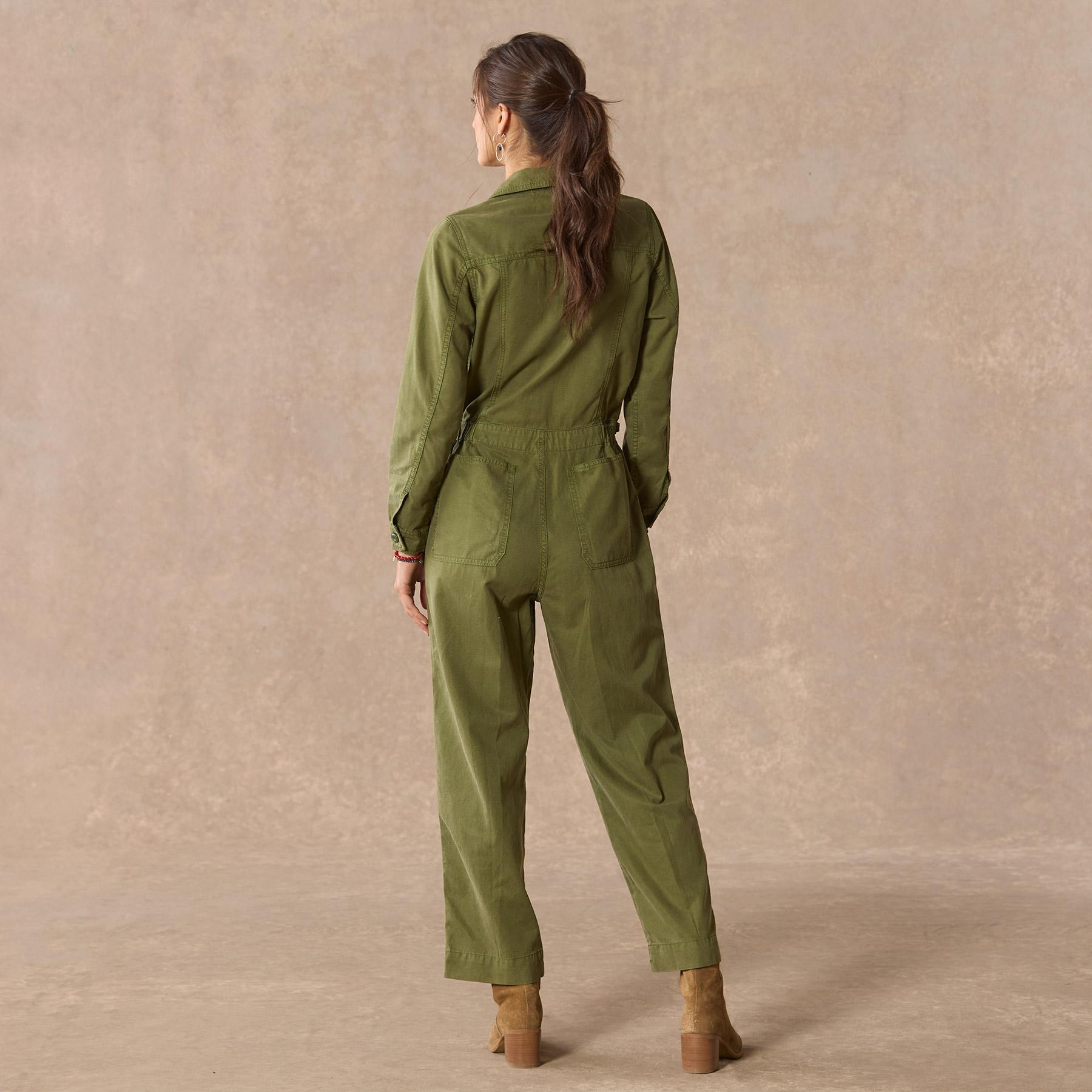 Super soft and lightweight. our utility jumpsuit drapes beautifully. with six pockets. center front buttons and zip fly and adjustable side tabs at waist for the perfect fit. Cotton/lyocell. Machine wash. Imported. Exclusive. Sizes XXS (00). XS (0?C2). S (4?C6). M (8?C10). L (12?C14). XL (16?C18). 25 inseam.