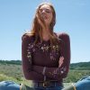 Lovely. multicolored floral and geometric embroidery graces our fitted. notch neck henley with contrast stitching detail. rib trim and princess seams. Metal buttons. Cotton. Machine wash. Imported. Exclusive. Sizes XS (0–2). S (4–6). M (8–10). L (12–14). XL (16–18). XXL (20-22). Approx. 26l.