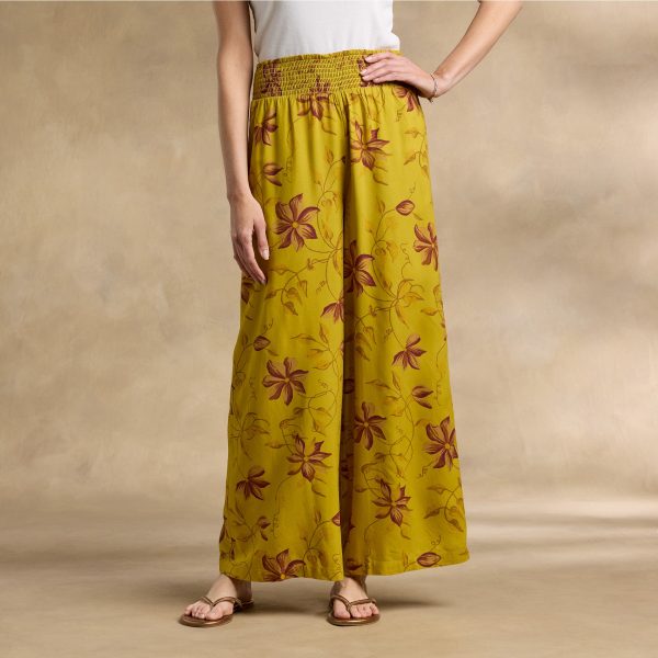 The easiest. breeziest. warm weather pants. with a beautifully draping wide-leg silhouette. big floral print and side seam pockets. Viscose. Machine wash. Imported. Exclusive. Sizes XS (0–2). S (4–6). M (8–10). L (12–14). XL (16–18). XXL (20–22). 29 inseam.