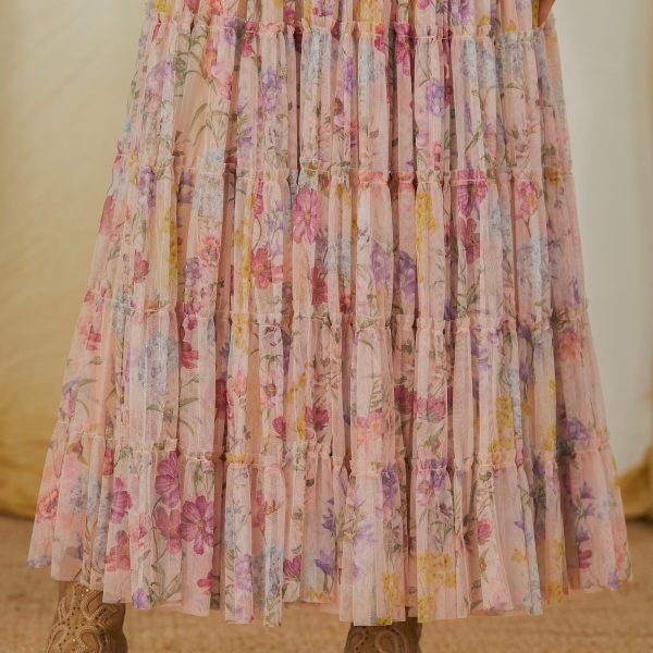 This tiered. printed mesh maxi dress is simply stunning. with ruffled mesh detail at the bodice. Sleeveless with back zip and fully lined. it has a beautiful drape and swing. Polyester. Dry clean. Imported. Sizes XS (0–2). S (4–6). M (8–10). L (12–14). XL (16–18). Approx. 57.5l.