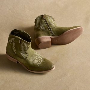 An ode to Western style: a classic short boot embellished with beautiful stitching and pull-on tabs for ease. Side zip. Leather with rubber soles. Handcrafted in Italy. Exclusive. Euro whole sizes 36?C42. 36 (US 6). 37 (US 7). 38 (US 8). 39 (US 8.5). 40 (US 9). 41 (US 10). 42 (US 11). 1.57 heel.
