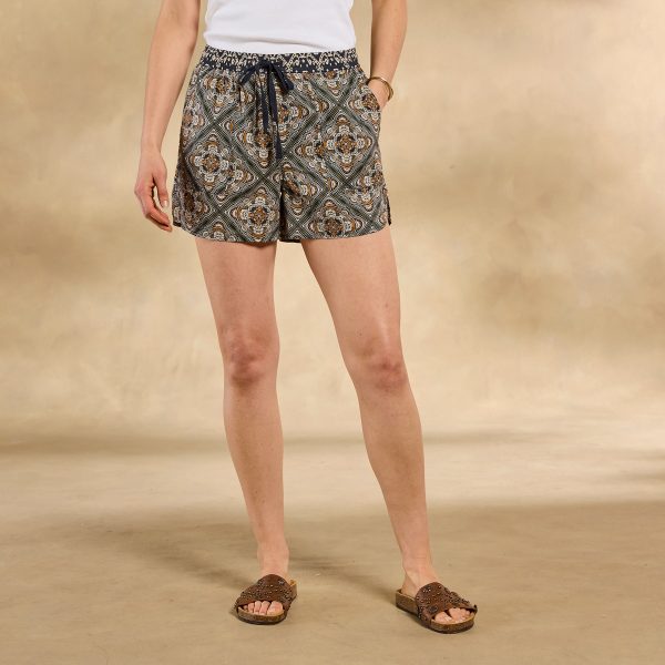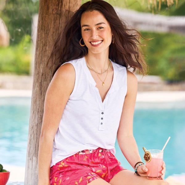 The vibrant print on our Kai Shorts takes center stage in these oh-so-comfortable elastic waist shorts with contrast print on waistband. drawstring tie for fit. back patch pockets. slanted front pockets and flirty side seam slits. Cotton. Machine wash. Imported. Exclusive. Sizes XS (0–2). S (4–6). M (8–10). L (12–14). XL (16–18). XXL (20–22). 4 inseam.