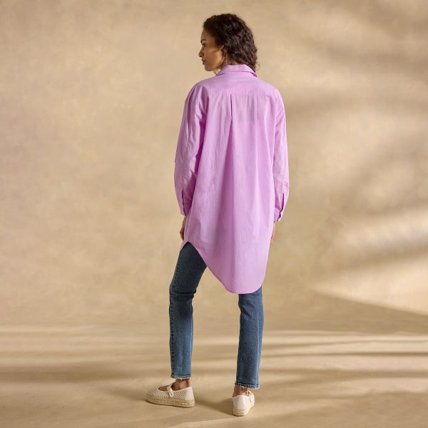 Just the right blend of comfort and style our oversized tunic is simple yet elegant—finished in special details. Chest patch pocket with pick-stitching. two side seam pockets and contrast print cuffs. Cotton. Hand wash. Imported. Exclusive. Sizes XS (0–2). S (4–6). M (8–10). L (12–14). XL (16–18). XXL (20–22). Approx. 33l.