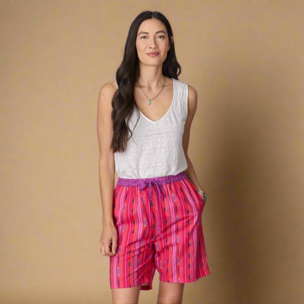 Vibrant prints add joy to our relaxed. high rise shorts with contrast print under the drawstring. Cotton. Machine wash. Imported. Exclusive. Sizes XXS (00). XS (0-2). S (4-6). M (8-10). L (12-14). XL (16-18). 6.25 inseam.