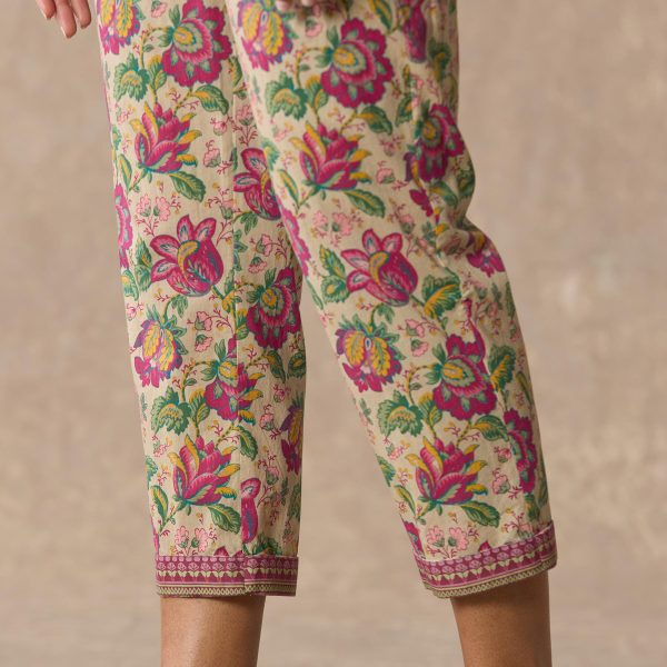 Perfectly comfortable for lounging. yet pretty enough to wear out on the town. Relaxed fit. drawstring pants in a vibrant print. Cotton. Machine wash. Imported. Exclusive. Sizes XS (0-2). S (4-6). M (8-10). L (12-14). XL (16-18). 23 inseam.