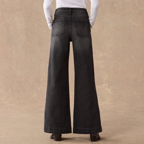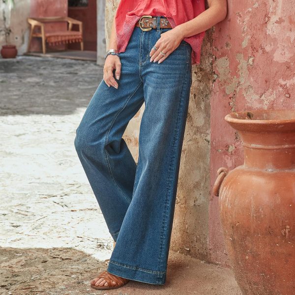 Stretchy. five-pocket styling with dramatic wide legs that grace the ankles. Cotton/spandex. Machine wash. Imported. Sundance exclusive. Sizes 24–32. 30. 32 or 34 inseam. 11 rise. 26 leg opening.