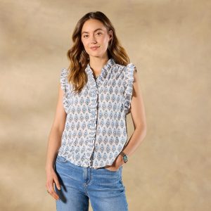 A Sundance fan fave. now in a ultra-feminine floral print! Ruffle details at sleeve and bodice; hidden-button placket. Cotton. Machine wash. Imported. Sizes XS (0?C2). S (4?C6). M (8?C10). L (12?C14). XL (16?C18). XXL (20?C22). Approx. 24.75l.
