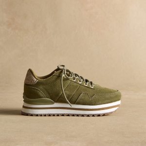 With a retro trainer silhouette. these sneakers feature removable cork insoles with AirFlow system. heel stabilizers for extra support and fish leather detail. Suede/recycled polyester. Imported. Whole sizes 36 (US 5). 37 (US 5.5). 38 (US 6.5). 39 (US 7.5). 40 (US 8). 41 (US 9). Approx. 1.25 heel.