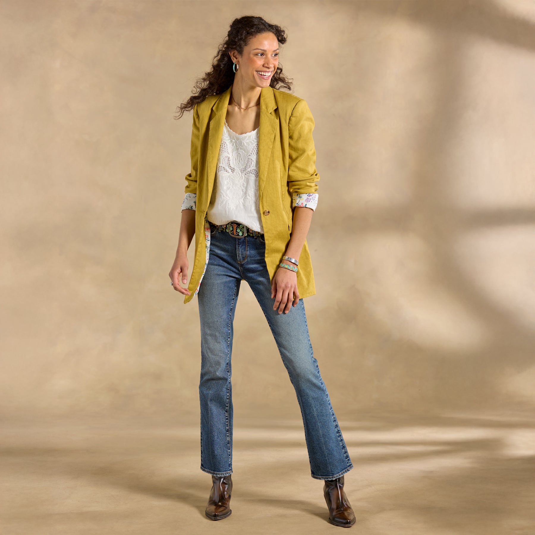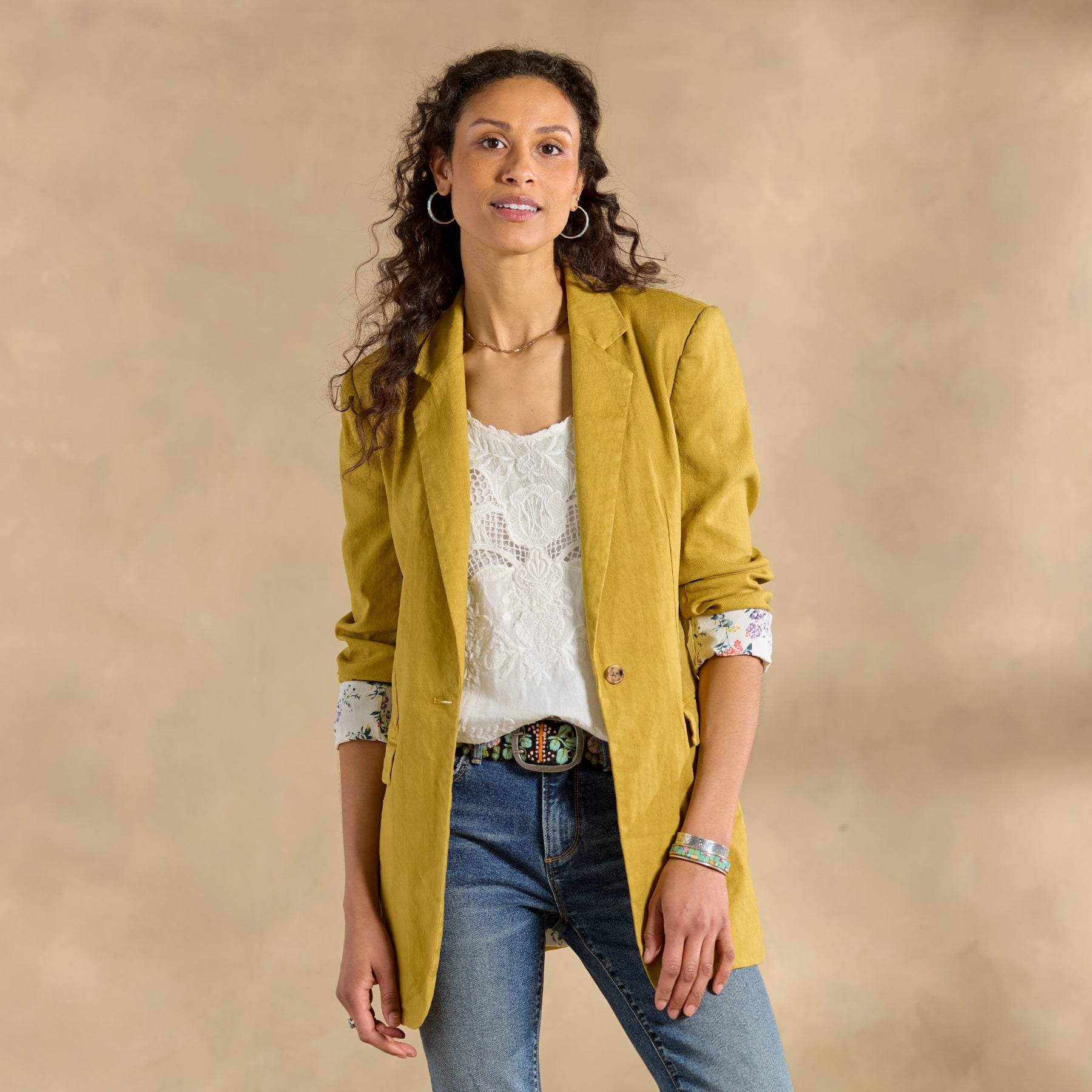 No need to borrow from the boys; with its thoroughly feminine take on this classic menswear silhouette. our Quinn Blazer is sure to become a permanent wardrobe fixture. Cute contrast lining and welt pockets. Linen/lyocell/spandex. Machine wash. Imported. Exclusive. Sizes XS (0-2). S (4-6). M (8-10). L (12-14). XL (16-18). XXL (20-22). Approx. 30l.