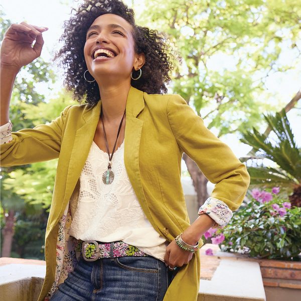No need to borrow from the boys; with its thoroughly feminine take on this classic menswear silhouette. our Quinn Blazer is sure to become a permanent wardrobe fixture. Cute contrast lining and welt pockets. Linen/lyocell/spandex. Machine wash. Imported. Exclusive. Sizes XS (0-2). S (4-6). M (8-10). L (12-14). XL (16-18). XXL (20-22). Approx. 30l.
