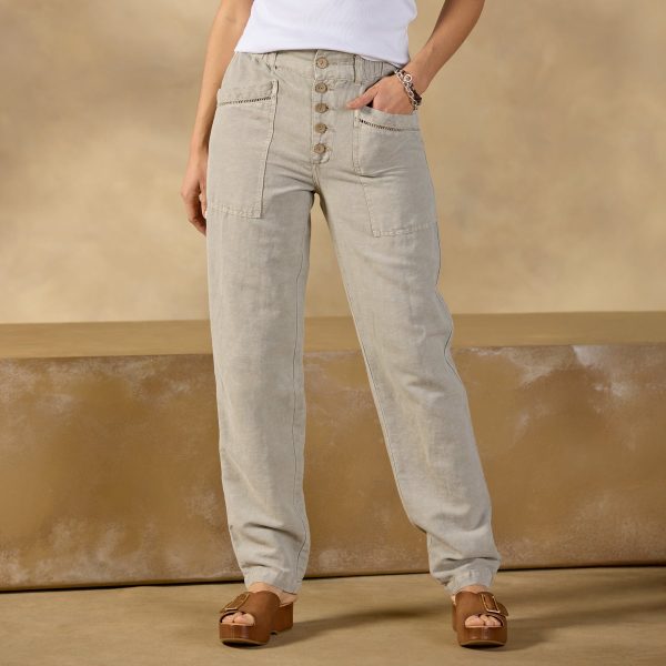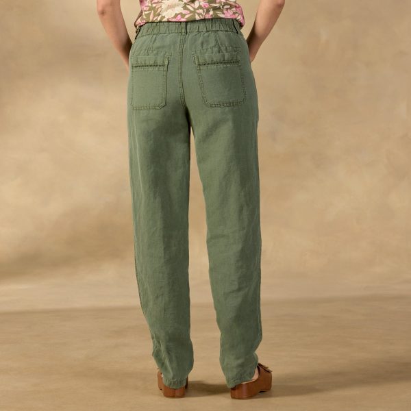 Our relaxed-fit Rivera Pants feature a classic straight-leg fit with a flat-front waist and comfy elastic back—plus pretty ladder lace on the patch pockets. Cotton/linen. Machine wash. Imported. Exclusive. Sizes 2–16. 28 inseam.