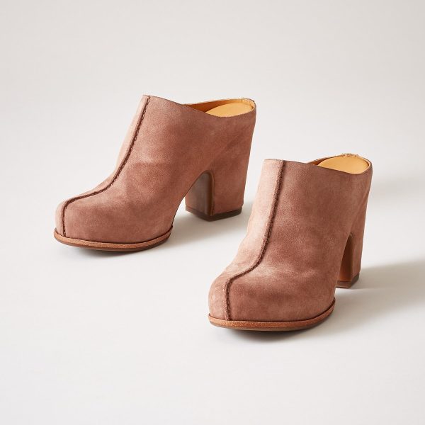 Elevated and artful. the Sagano Mules blend sculptural style with everyday sophistication. Crafted in rich leather. these bold slip-ons feature a hand-shaped wooden sole. a distinctive cutout heel. and minimalist stitching that highlights their refined silhouette. A modern statement with timeless soul.