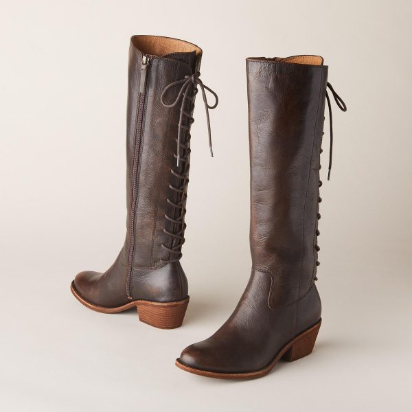 Fully adjustable lacing provides a perfect fit in these beautifully crafted. suede and leather boots by S???fft?. Imported. Whole and half sizes 6-10. 11. 2 heel.