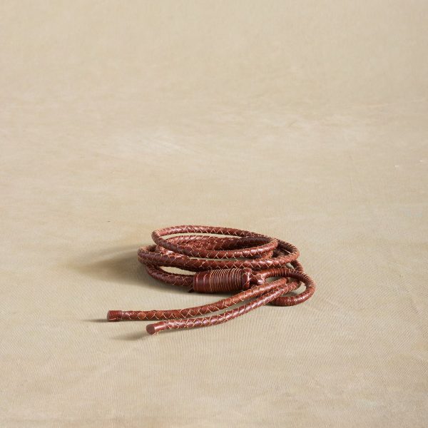 Twin leather braids loop through a stylish ring. giving subtly stylish shape to any silhouette. Imported. Sizes XS/S and M/L. Approx. 47 long (M).