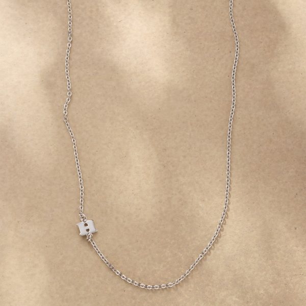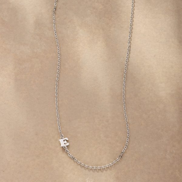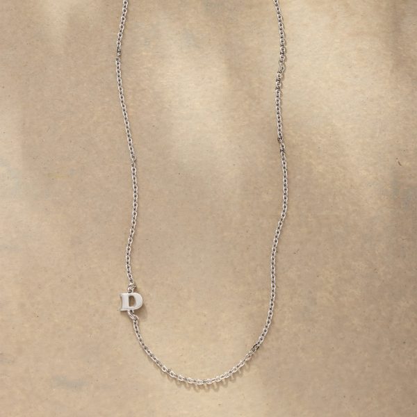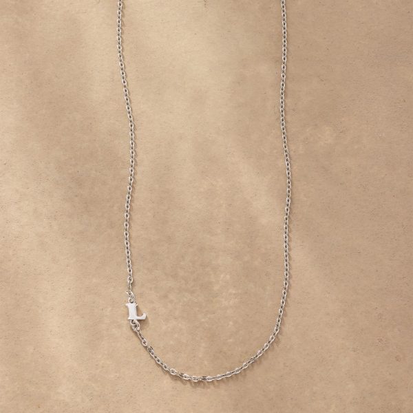 Elegance with a personal touch. Our necklace is handcrafted with upper-case serif letters A to Z. Sterling silver chain and lobster clasp; rhodium-plated sterling silver letters. Made in USA. 17l.