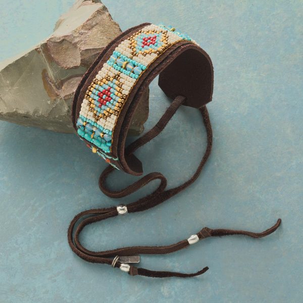 Handweaving Czech glass beads over butter-soft leather. Adonnah Langer creates intricate tapestries to wear and love. A sterling silver slider adjusts the laces for a perfect fit. Handmade in USA. Exclusive. 6 to 8-1/2l. 1-3/16w.