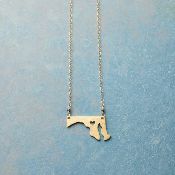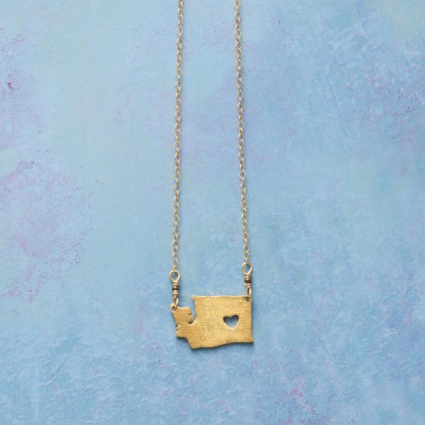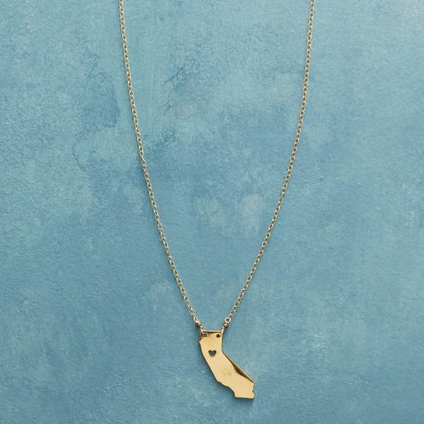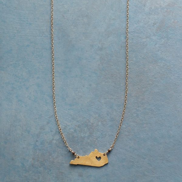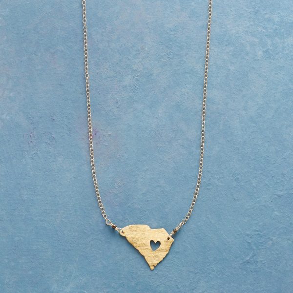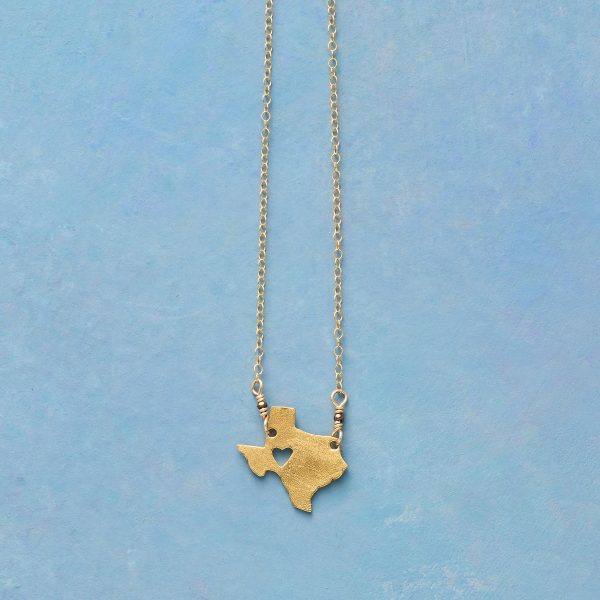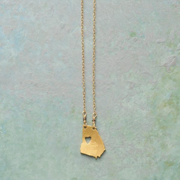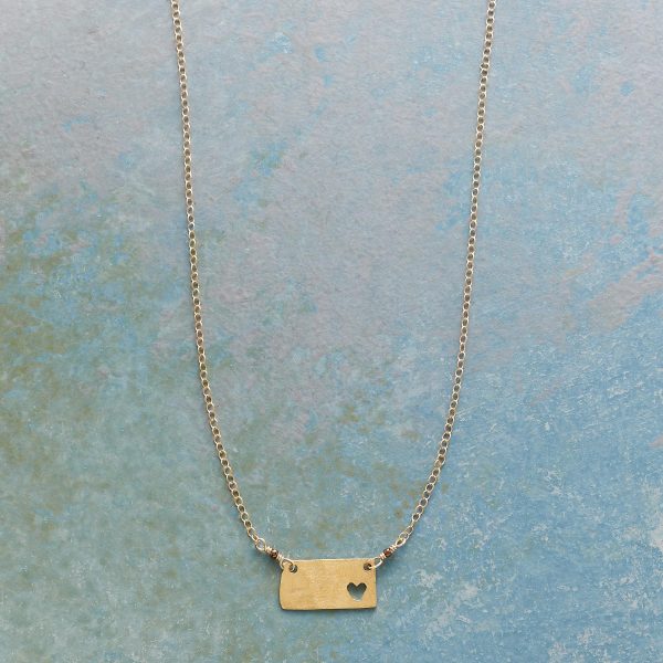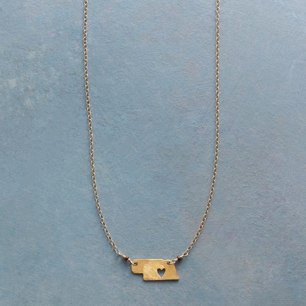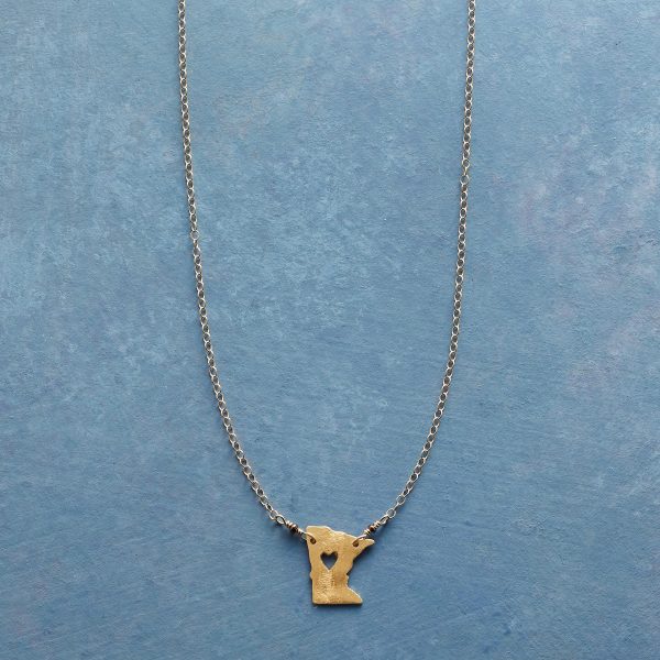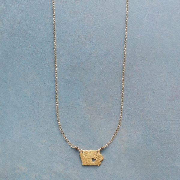 Celebrate your favorite state with our 18kt gold-plated charm strung on a 14kt gold-filled chain. A cut-out heart shows your love. Lobster clasp. Handcrafted. Exclusive. 17-18l