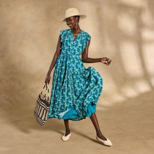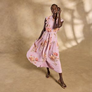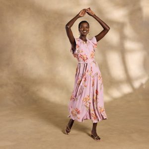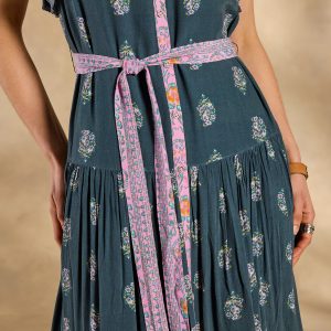 Effortlessly feminine. our Tierra tiered maxi is straight out of a rom-com montage—featuring a demure button front. ruffled neckline and sleeves plus a removable belt. Separate slip. Viscose/cotton. Machine wash. Imported. Exclusive. Sizes XS (0-2). S (4-6). M (8-10). L (12-14). XL (16-18). XXL (20-22). Approx. 53l.
