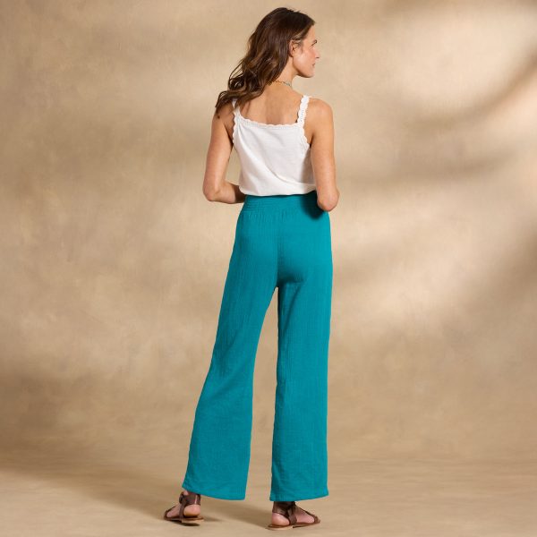 The easiest. breeziest warm weather pants. with wide-leg silhouette. smocked elastic waistline and decorative pearl buttons. Fully lined. Pull them on and go anywhere in style. Cotton. Machine wash. Imported. Exclusive. Sizes XS (0–2). S (4–6). M (8–10). L (12–14). XL (16–18). XXL (20–22). 29 inseam.