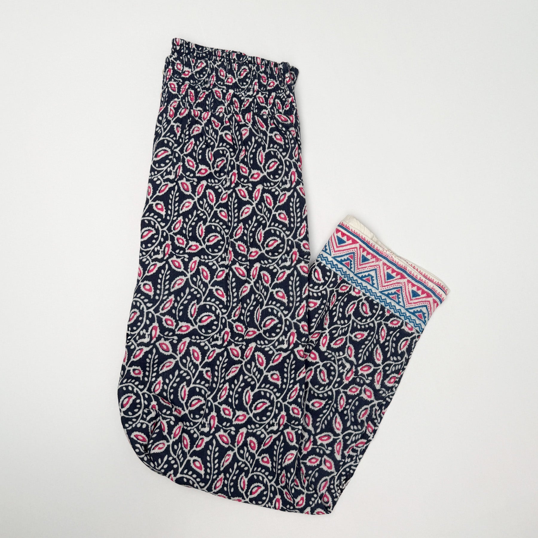 The easiest. breeziest warm weather pants. with wide-leg silhouette. smocked elastic waistline. decorative pearl buttons and festive seasonal prints. Pull them on and go anywhere in style. Cotton gauze. Machine wash. Imported. Exclusive. Sizes XS (0–2). S (4–6). M (8–10). L (12–14). XL (16–18). XXL (20–22). 29 inseam